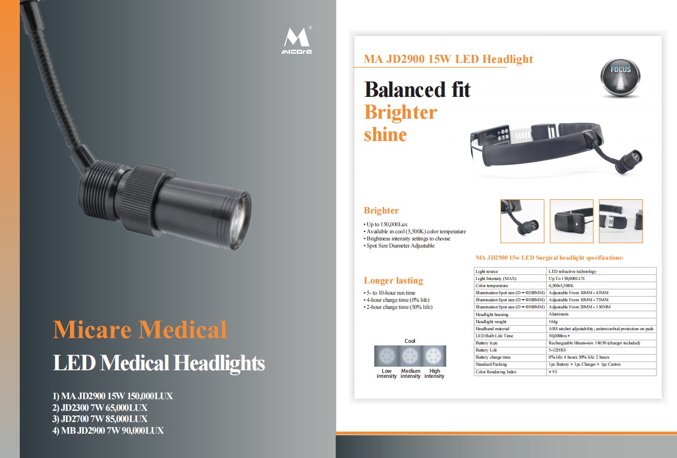 MA JD2900 15w LED సర్జికల్ హెడ్లైట్ స్పెసిఫికేషన్లు: